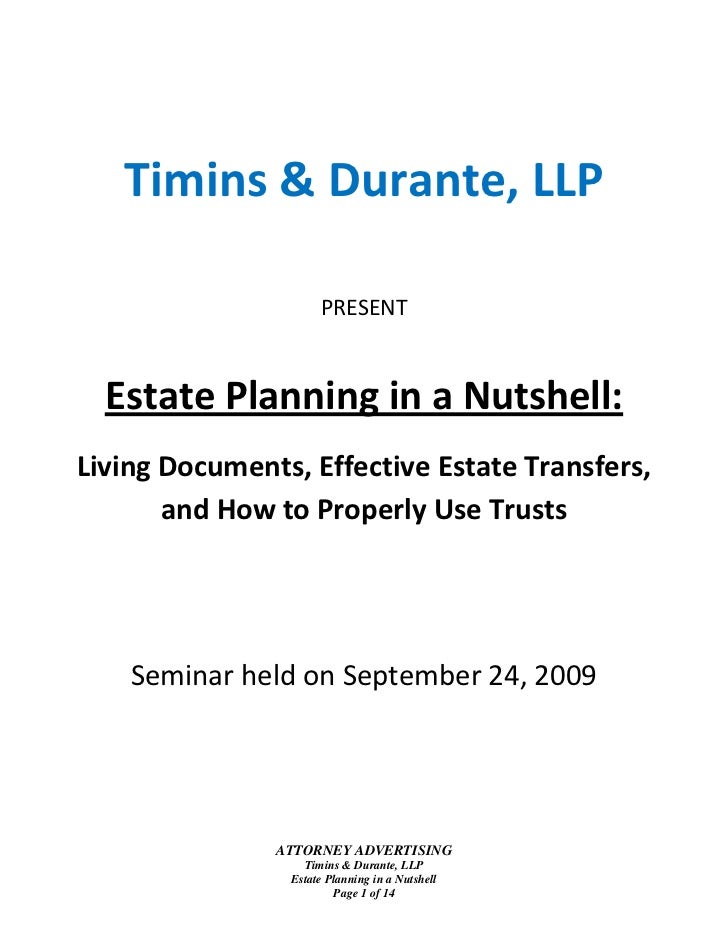 The information in this presentation will be explained in plain English—no legalese—and the entire presentation will take about 40 minutes. So we Estate planning is not just for “wealthy” people—whatever that word means. ... Get Content Here